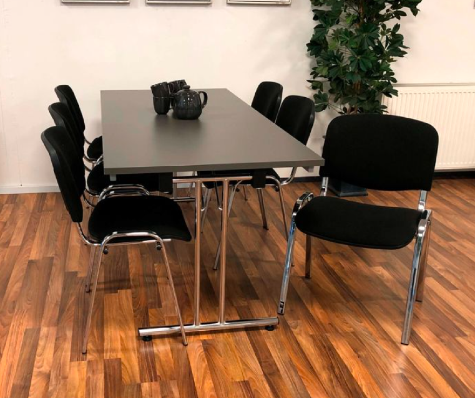 ekskl. momsKantinebord i 80×180 cm er med en slidstærk decor laminat bordplade i antracit eller bøg og med et flot blankt stel. Bordet kan let klappes sammen og stables. Dette bord er velegnet til 6 personer og leveres klar til brug. Klapbordet er med justerbare fødder som gør det muligt at det står stabilt på ujævne gulve.