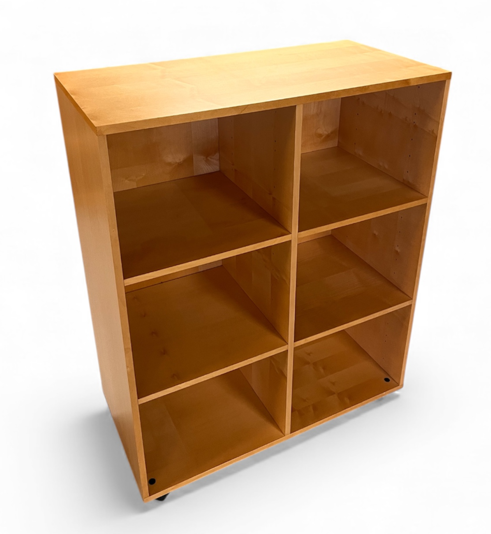 ekskl. momsReol i ahorn finer med 6 rum og på hjul