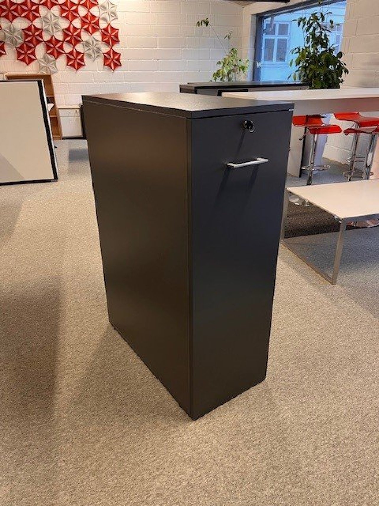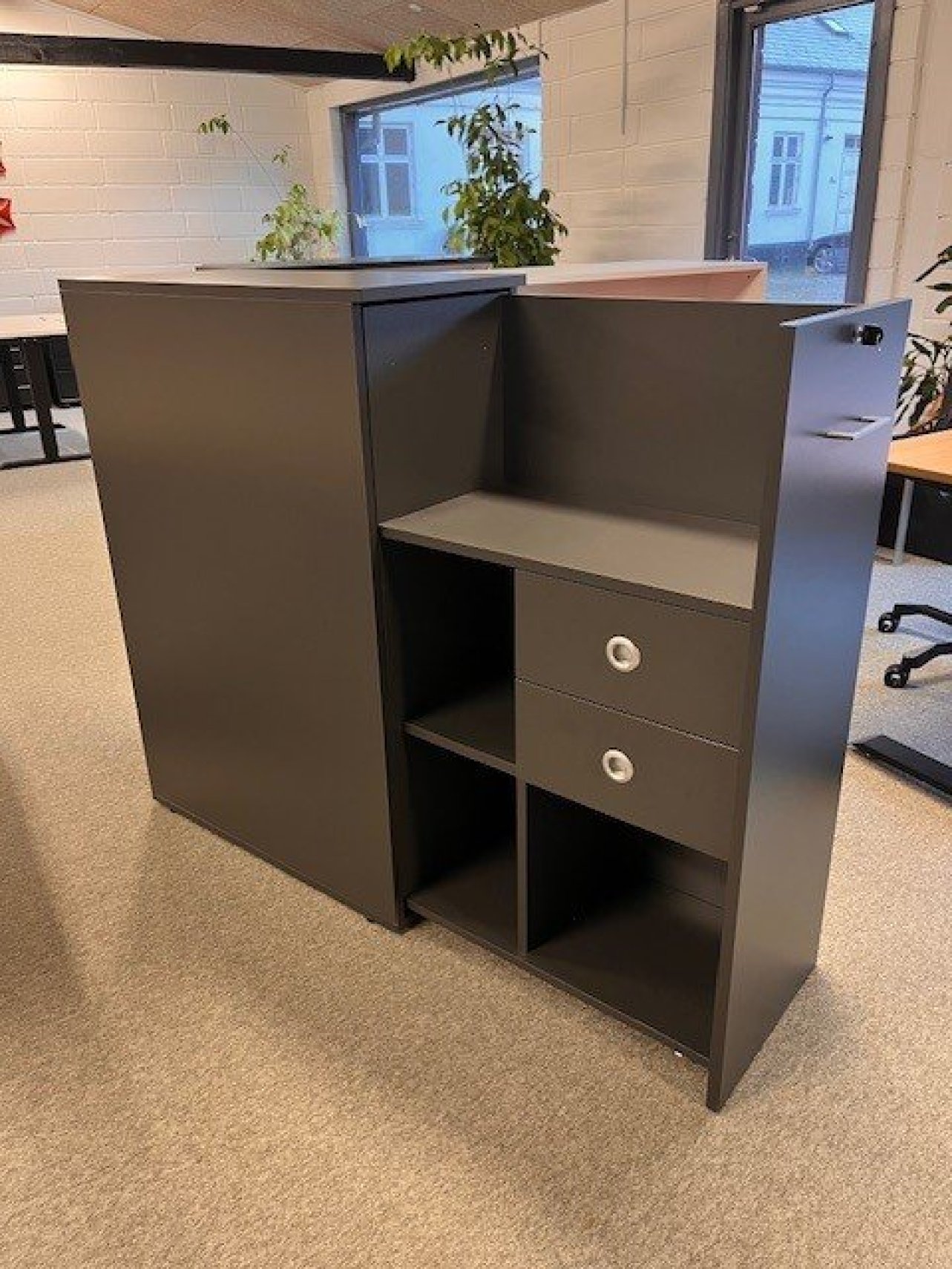 ekskl. momsFlot udtræksskab i antracit grå med hylder og 2 skuffer.