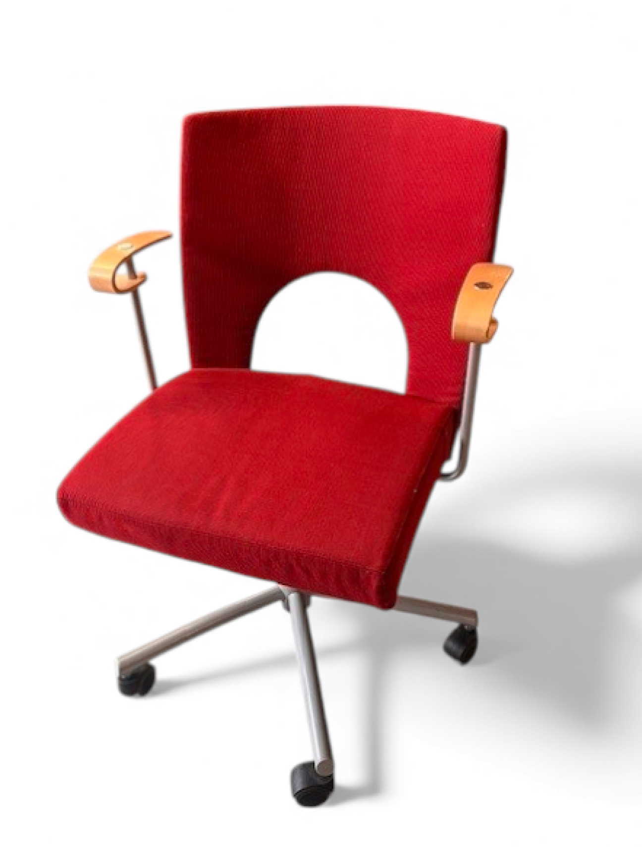 ekskl. momsFlot Kinnarps Yin mødestol med armlæn i bøg. med hæve/sænkefunktion.